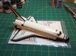 I’ve been working on a 1/144 shuttle stack of Discovery (STS-31) on and off (mostly off) for the last year or so. I’ve finally made some progress on it. The SRB’s are close, I need to relocate a couple of antennas and then do some hand painting and the decals. The ET is the part that has probably caused this build to sit idle for so long. Getting the colors right and masking is just giving me fits. Eventually I’ll have to tackle it. The orbiter is almost finished. I painted it a few months ago and recently decided that I need to get the decals on it and at least get this part finished.