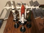 I thought I’d show my 1/144 rocket garden as it stands now. I took some of these pictures a few weeks back when I had not yet finished my Shuttle Stack. It is now finished and you can see in the last couple of rocket garden pictures that it is now displayed with the rest of my fleet. The Saturn V will hopefully be added before the 50th anniversary of the landing of Apollo 11 on July 20th. I have in my stash the models of the missing Russian launchers. I have everything I need to build a Voshkod 2 model, and I am only lacking the Soyuz upper stage to be able to build that. I’m not sure exactly how the Saturn V is going to fit in with this grouping. I may have to relocate my ISS model.