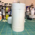I’ve also started on the S-II stage. I’ll be using the Monogram part for this. Since I have to remove all the molded on details anyway, I thought I’d use the Monogram part since it does not have that huge hump at the seam line in the stringer sections. At this point I’ve removed all the molded on details. I will have to remove some of the molded on stringers on the forward and aft stringer sections. They are too long. Time to make some measurements.