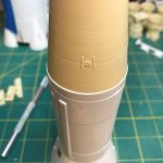 I started the S-IVB portion of the build by adding the PE personnel access door to the interstage. The ullage motors had already been sanded to the shape desired.