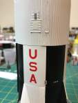 Now SA-510 Apollo 15, is all assembled and on her stand. She’s ready to take her place in my 1/144 US Manned Launchers rocket garden. Below are a few photos of the details on the finished model.