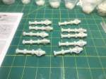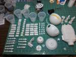 I assembled the 10 spine parts. These each consisted of 5 pieces. There were no locator pins since there needed to be room to run the metal tube through them. They did have an over lapping lip that helped the parts go together. Once the two halves were set, then the three reinforcing ribs were added. Then I just needed to do that 9 more times. I also then assembled the cargo/fuel containers. You have to build 60 containers of 5 different types. The fit was pretty good. Some Tenax and a bit of pressure glued them together with very few seam lines. The parts are all keyed so there is very little chance of putting them together incorrectly, but some organization will speed the process. There are some seams on the back sides that may not be hidden. I may not fill the seams if they can’t be seen. But, they are all done and ready for primer.