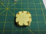 Next, I made some marks on the first stage boat tail. This will allow me to drill a hole in the center for the rod that will hold the model in place on the base. I also made a diagram to assist me when I scribe the lines on the base heat shield.