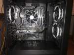 At this point I checked the back panel and noticed that the USB sockets didn’t quite line up with the the openings in the back panel cover. I really missed that one. To fix it I had to remove the rear facing case fan, then disconnect the power cables from the motherboard. Next, disconnect the SATA and the RGB cables and unscrew the motherboard. Then carefully pull the motherboard forward to get it away from the back panel cover. Then carefully put it back into place and this time make sure that the USB sockets cleared the back panel openings. Finally, hook everything back up.