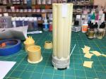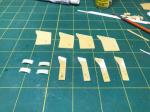 Finally, I cleaned up all the fins and then adjusted them to fit on the base of the vehicle. Each one was different in some minor way and the Airfix base was not quite as symmetrical as it looks. Some of them also needed some putty to fill some irregularities. They are now properly aligned and I labeled each one so I would know where each one fits. They will go on after all the other details are complete.