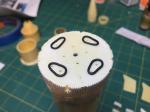 In concert with the S-I hydrogen vent pipes I also removed the vent pipes from the interstage. They are mounted too close to the sides of the interstage and would end up not lining up well with the pipes on the S-I. I debated with myself about doing this since it will require more scratch building, but I just couldn’t let that one go.