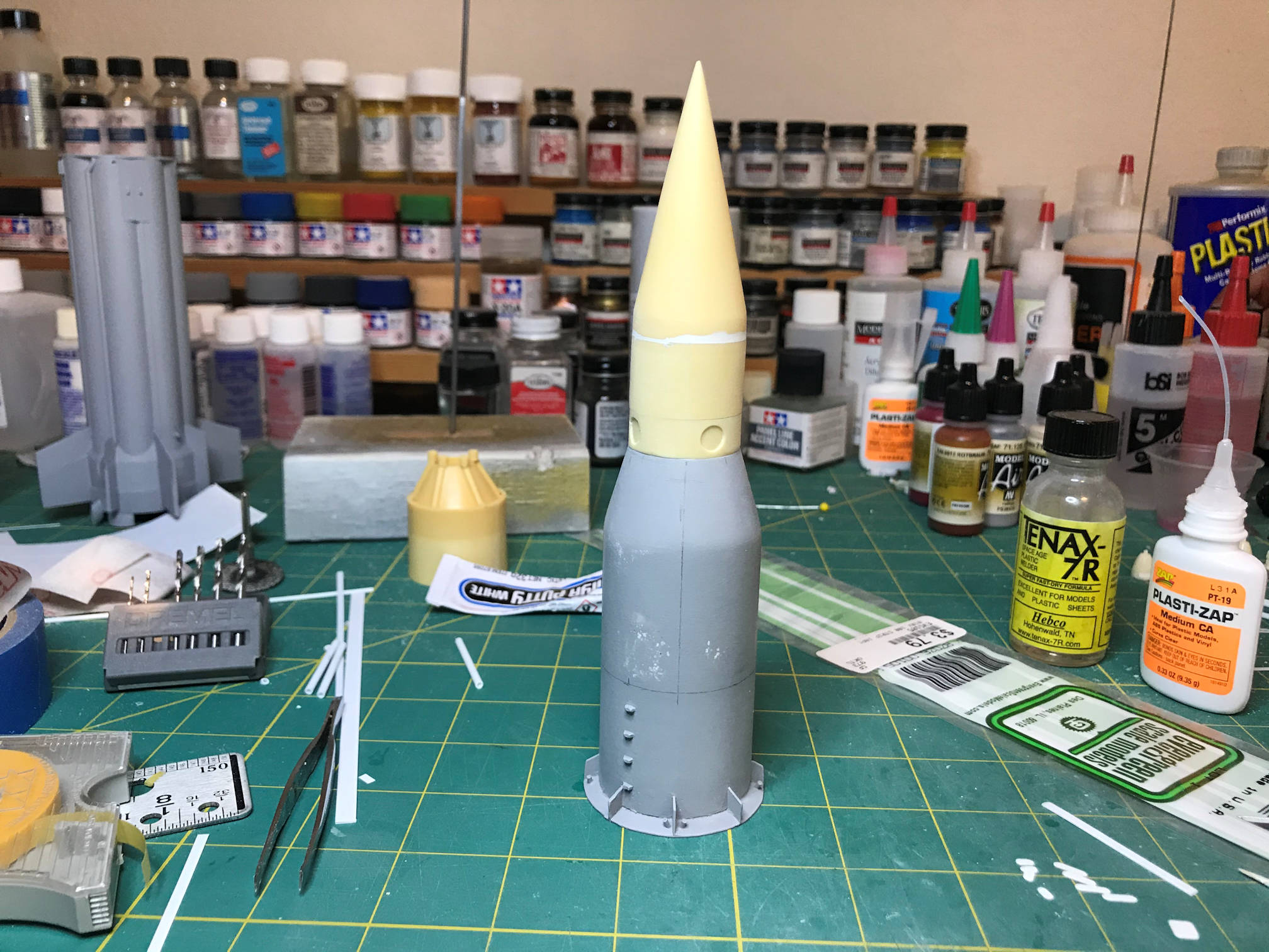 Finally, I could put a coat of primer over the S-IV/payload part and see how it turned out.