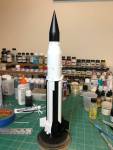 The construction is finished except for adding the S-I retrorockets and the S-I engines. The engines have been painted.