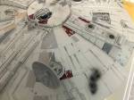 Then I started making the grime streaks on the Falcon. I started with the bottom side first. I was using the Tamiya Weathering Master pigment powders. I got off to a bad start as the pigments just would not stick very well to the Vallejo clear coat I had sprayed earlier. I could only assume that the clear coat was just too slick to take the pigments properly.