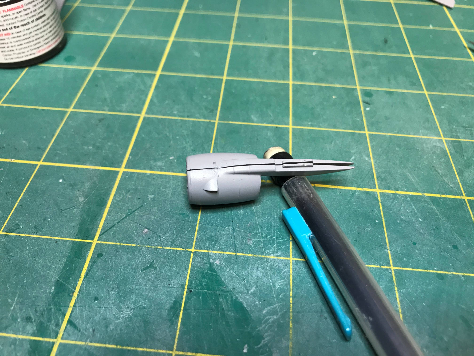 I started assembly of the engines before I primed them. The fit here is not the best, as can be seen in the below photos.