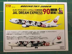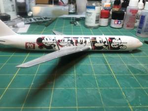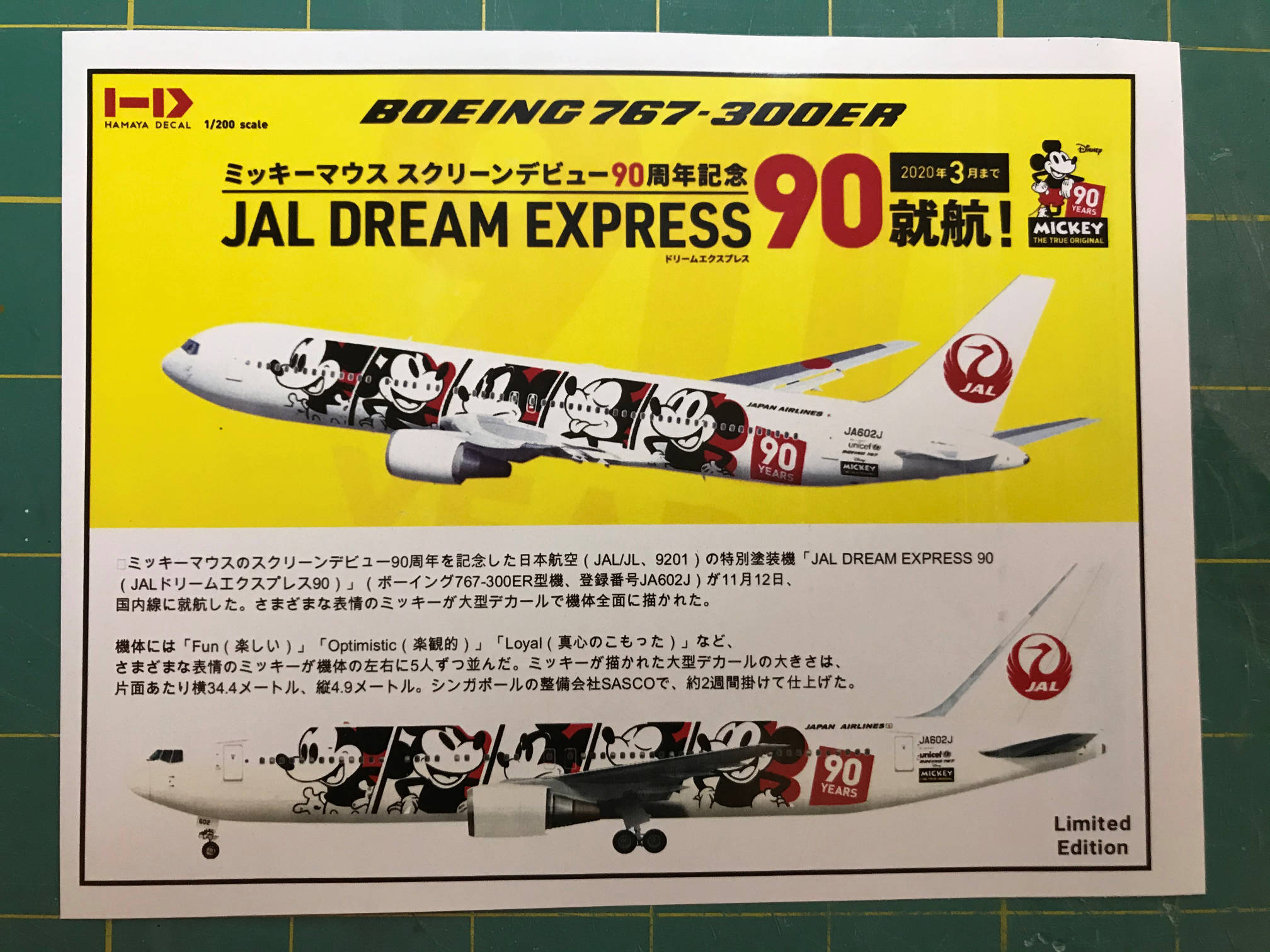 Replacement decals were not to be found. How could I save this build? I stripped the two decals that I had applied off the model and started a rethink. The Pokemon tie in was now out. I started searching online for alternative liveries that were unusual and fit a Hasegawa 767 model. After a few hours I had found several, but the interesting ones were in 1/144 scale not 1/200 scale. I continued searching and finally after another day found a set of decals for a 1/200 767 that JAL used for the 90th anniversary of Mickey Mouse. My nephew and his family enjoy Disney things so this might just work. I ordered the decals and in a few days they arrived.