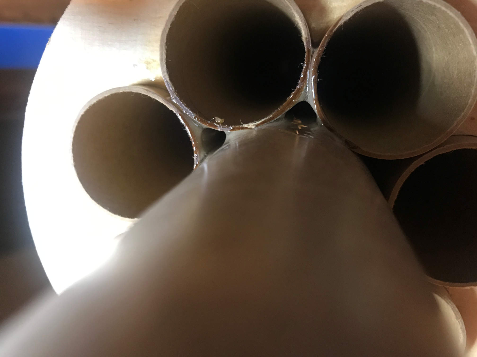 After that had cured I used more 30 minute epoxy to glue the 38mm tube to the 29mm tubes from the top of the upper centering ring.