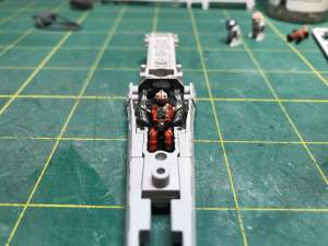 After painting the pilot figures, the droids and pilots were given a clear gloss coat in preparation for the TINY decals. The decals were applied using MicroScale MicroSet. When that had dried, Walthers Solvaset was used to get the decals to conform to some of the surface details, particularly on the droids. The droids took multiple applications of Solvaset to get the decals to conform.