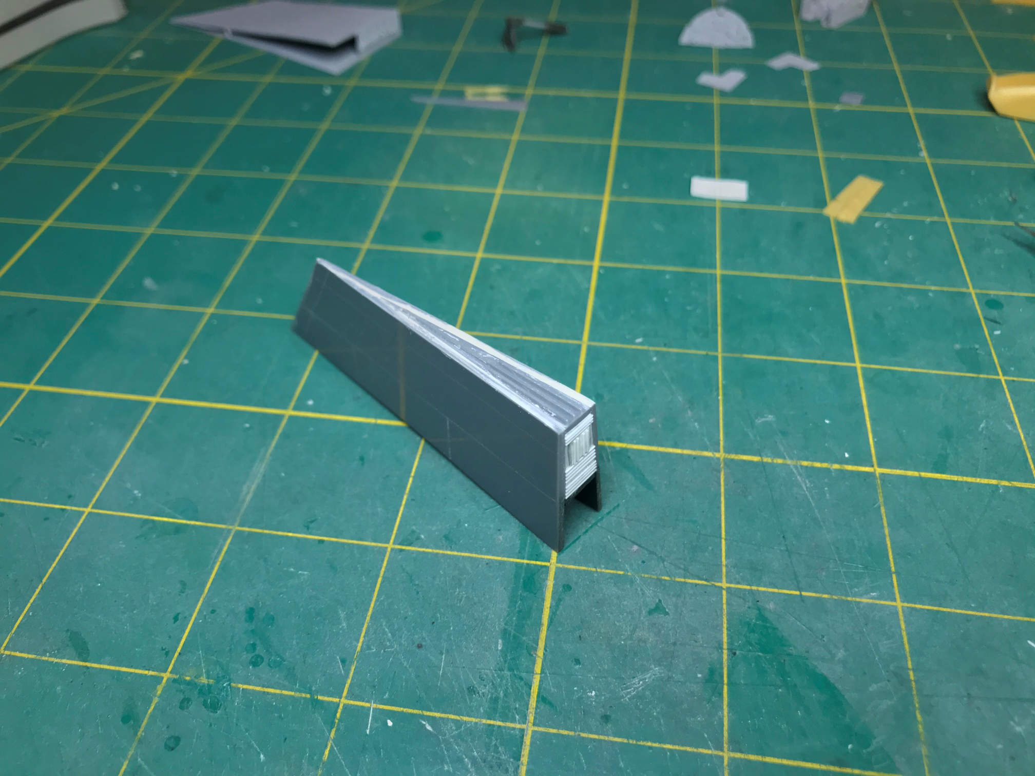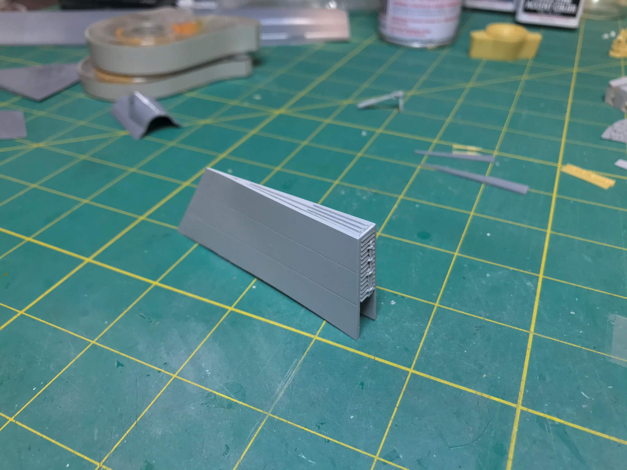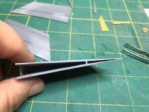 Anyway, before I started work on the ventral fin, I notice that the sides of the dorsal fin had a slight curvature. To correct it I inserted a small strip of .01 x .01 styrene.