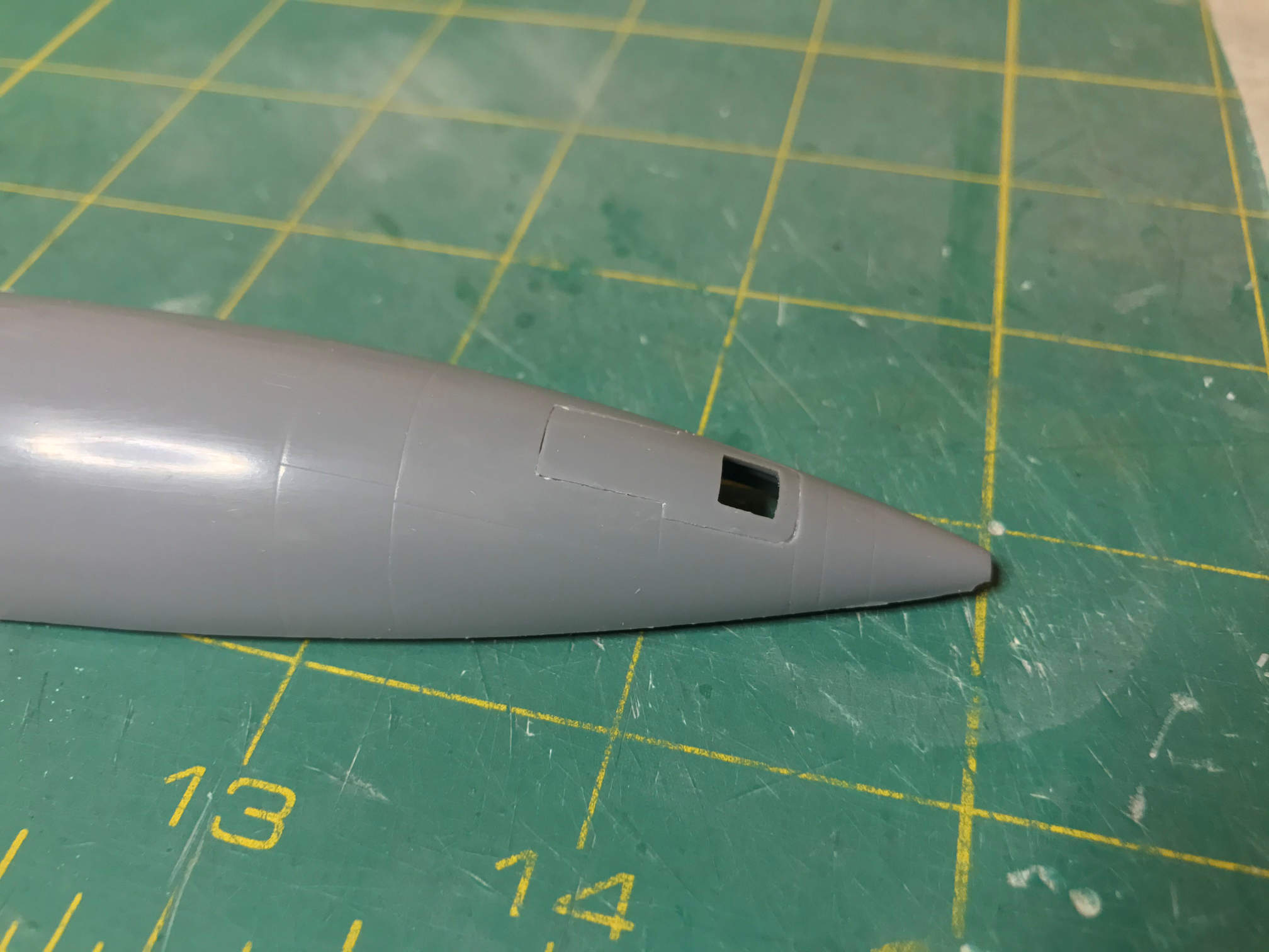 I then did a little work on the nose gear door. It required quite a bit of sanding and shaping to fit properly, and I still don’t have the scoop door added yet. As an aside, the scoop door is what allows the nose gear door to open at a high angle of attack, otherwise the air stream pushing against it would keep the nose gear door from opening.