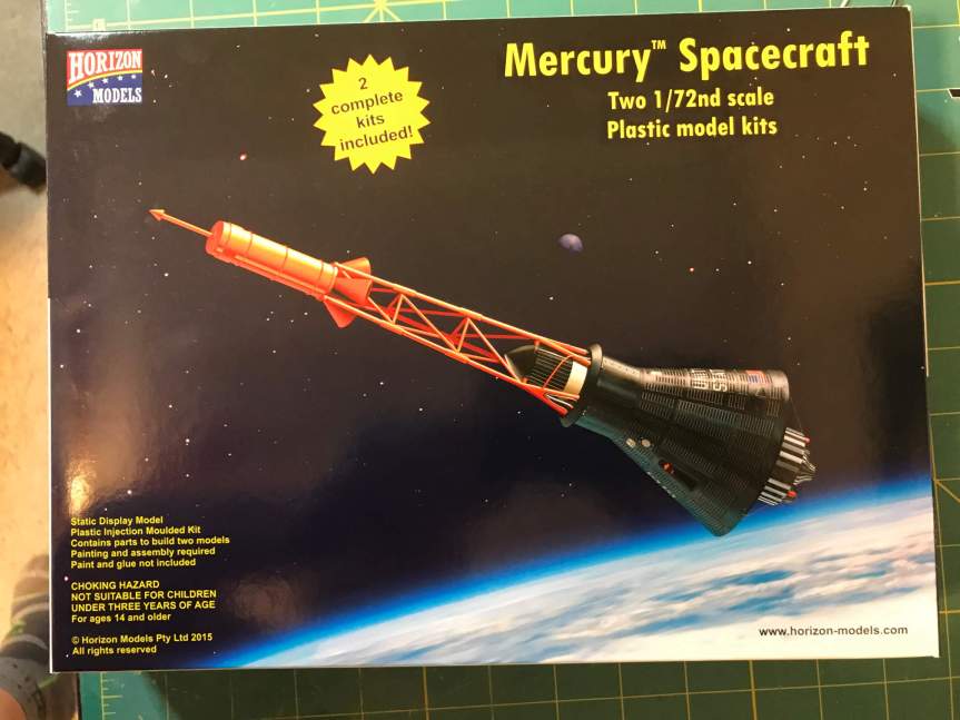 While I’m contemplating what to do about the fins on the Pegasus XST, I started building what should be a simpler kit that has been in the stash for a while. I bought the Horizon 1/72 Mercury Spacecraft kit when they were first announced back in 2015.