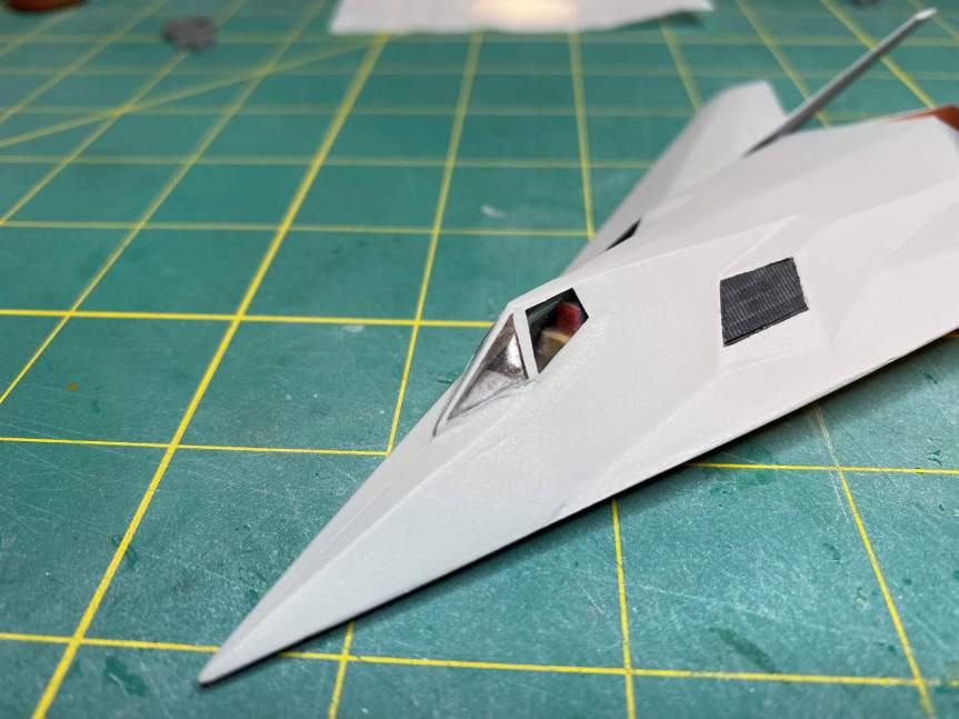 I have an old Verlinden Productions tarmac card that I will display it on. I need to get a wood base large enough for it first. It should be large enough to display both the XST and the F-117 that it paved the way for. Here are a few shots of the completed model.