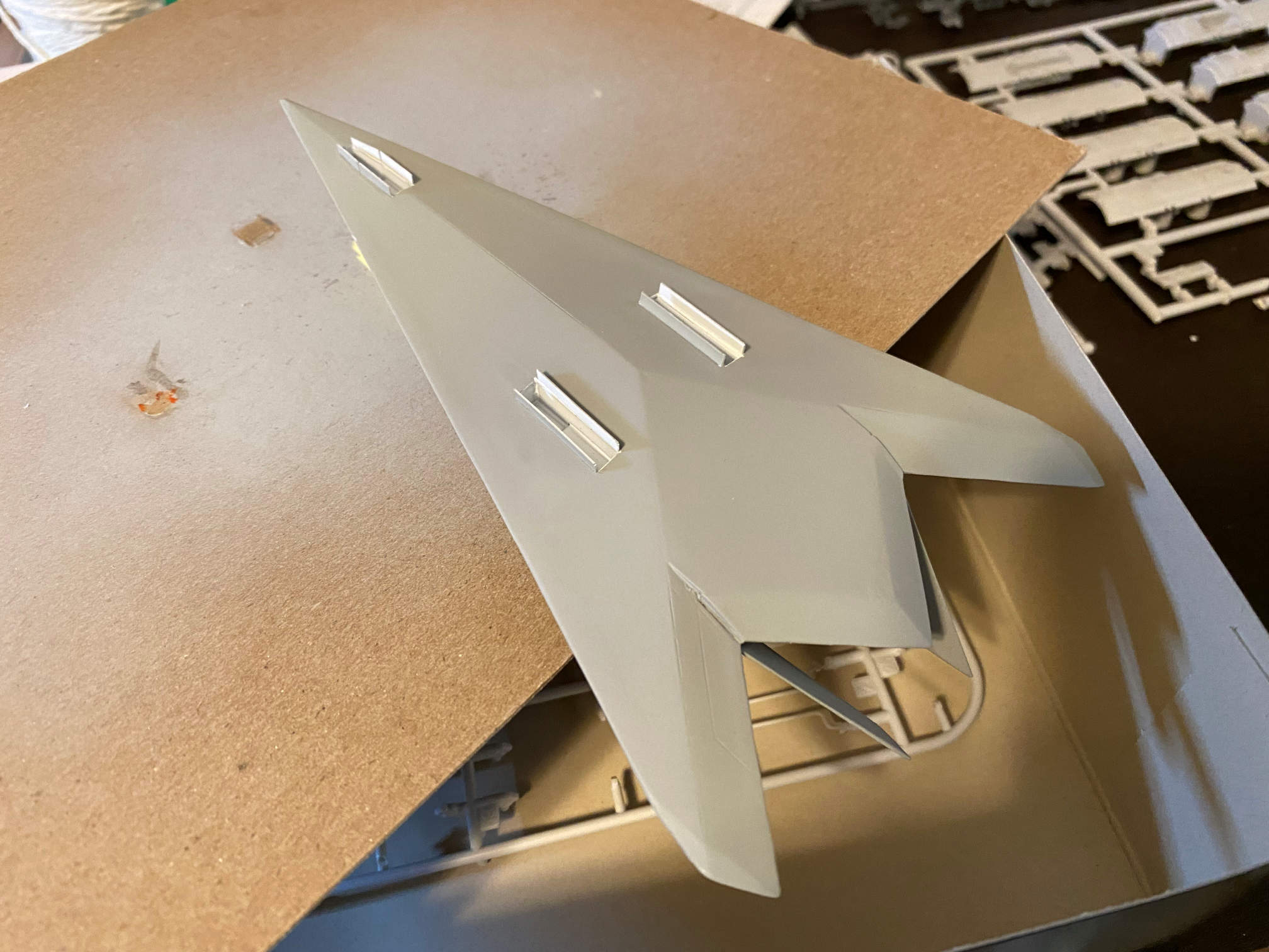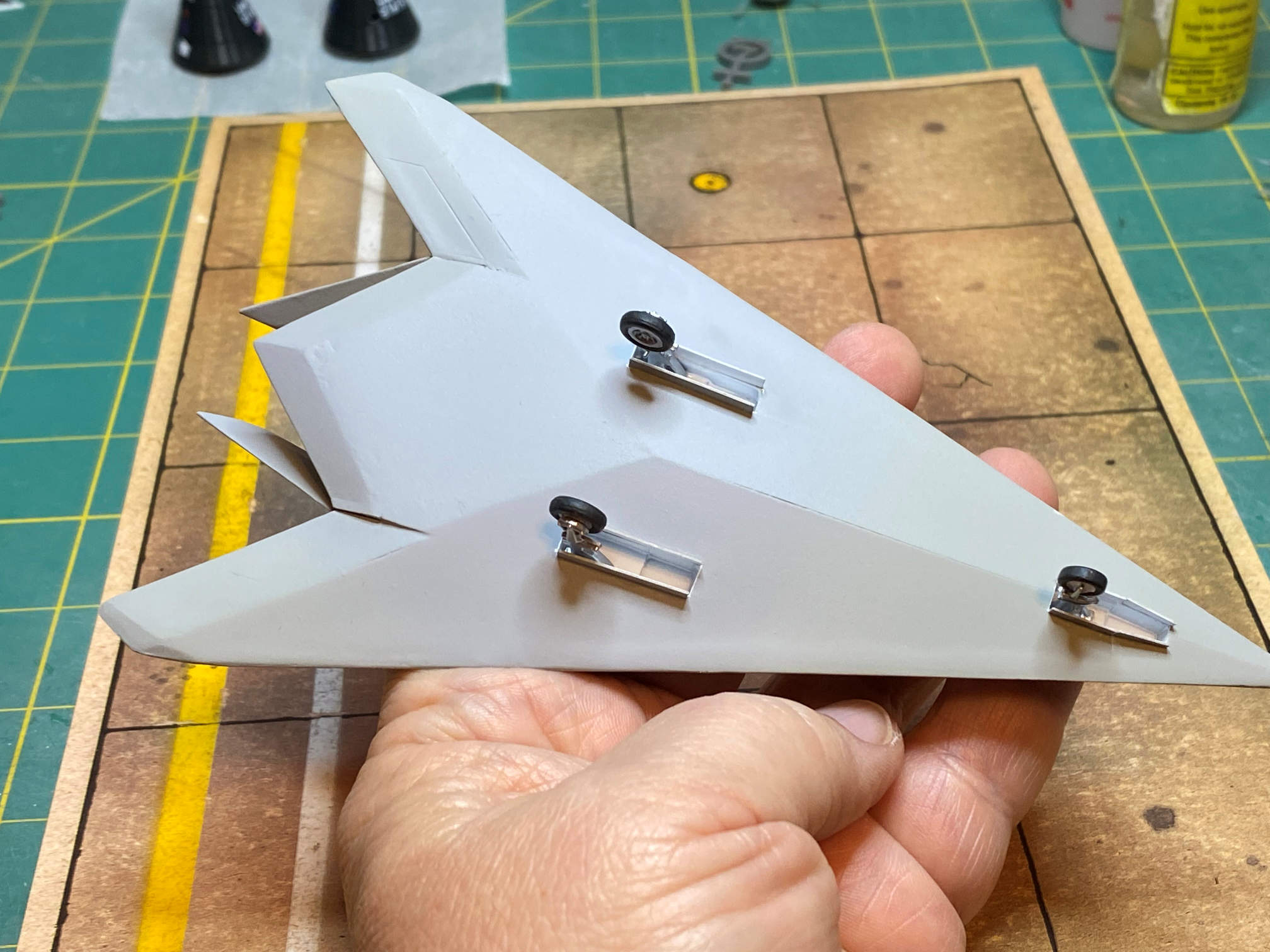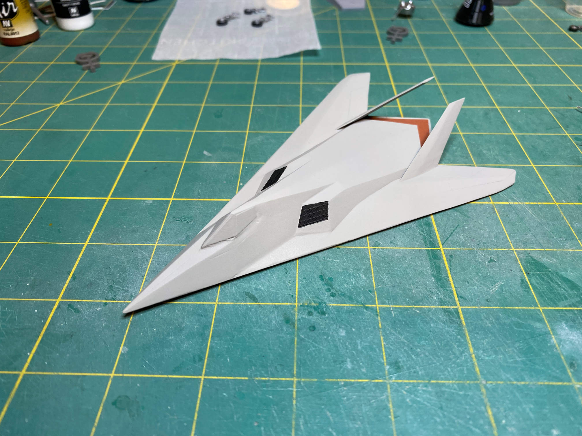 I have an old Verlinden Productions tarmac card that I will display it on. I need to get a wood base large enough for it first. It should be large enough to display both the XST and the F-117 that it paved the way for. Here are a few shots of the completed model.