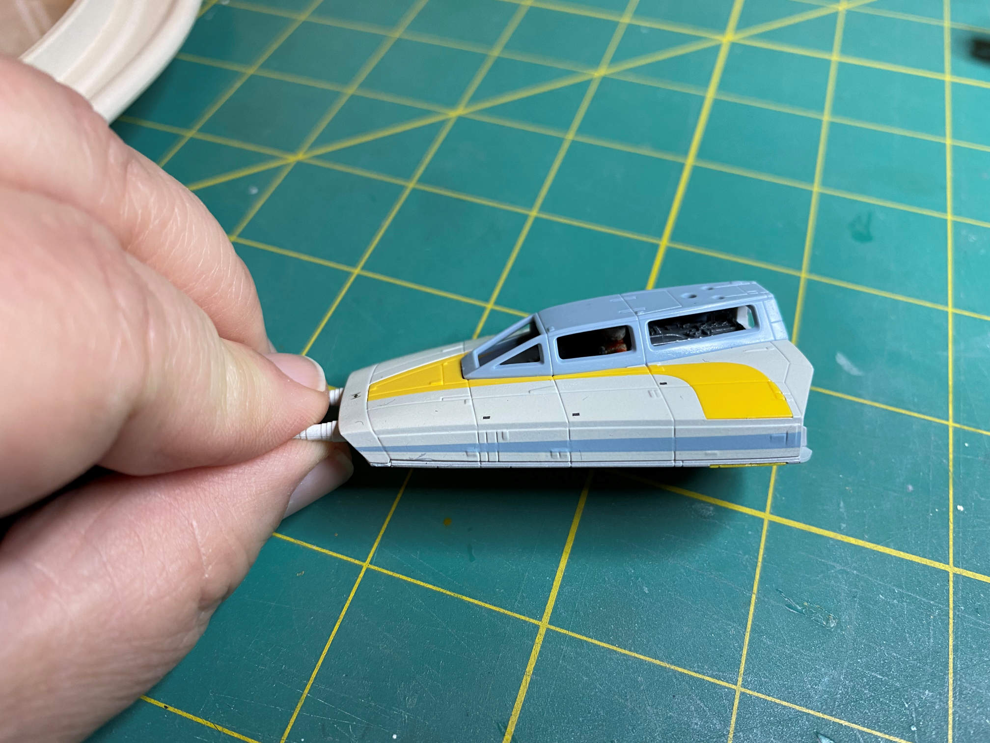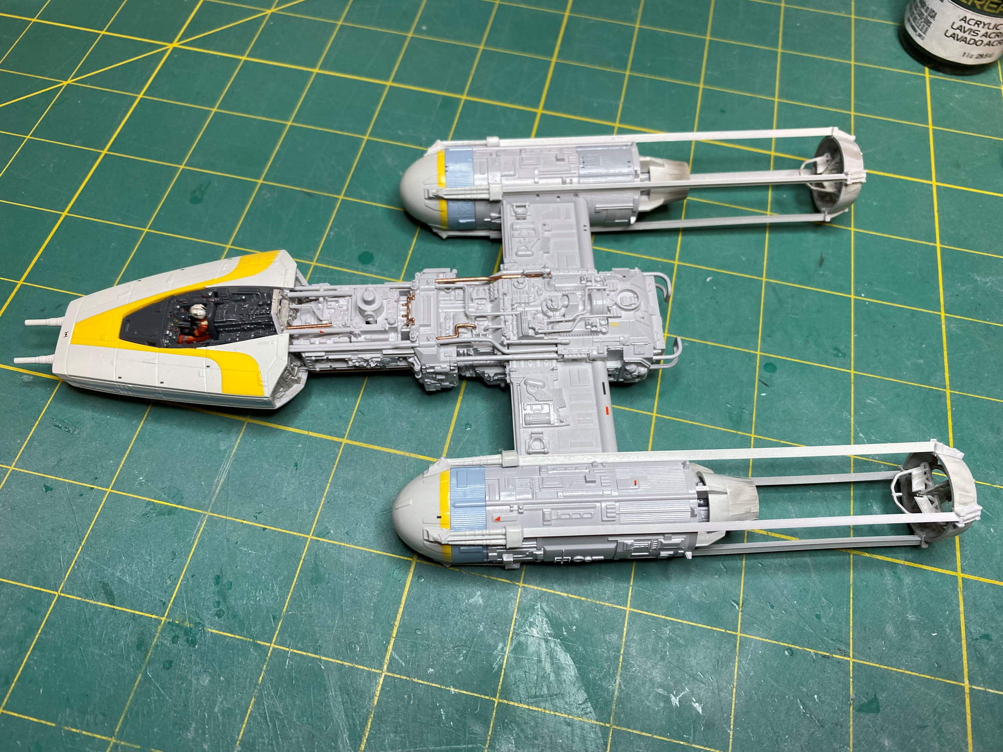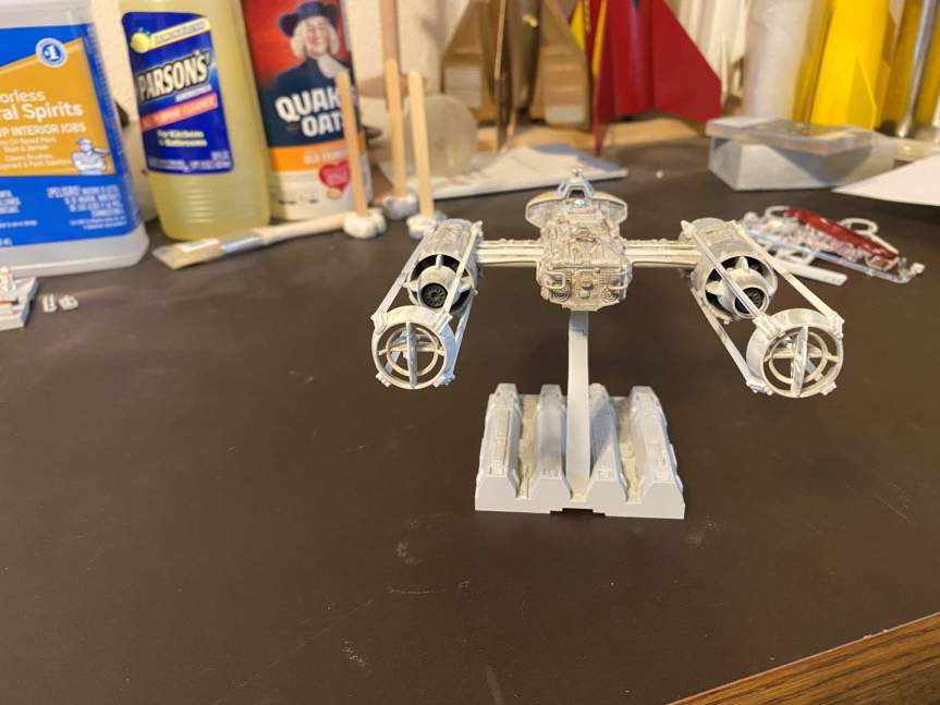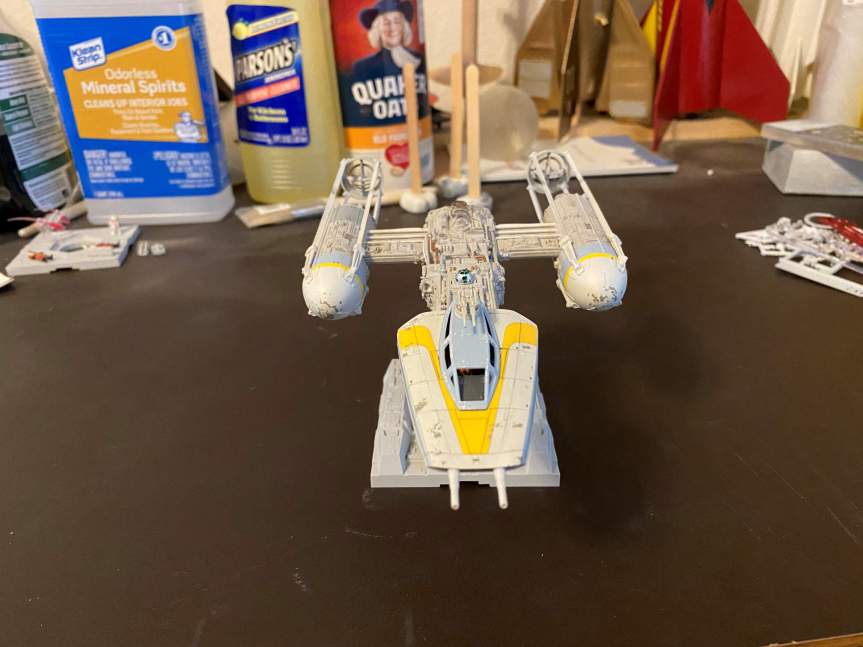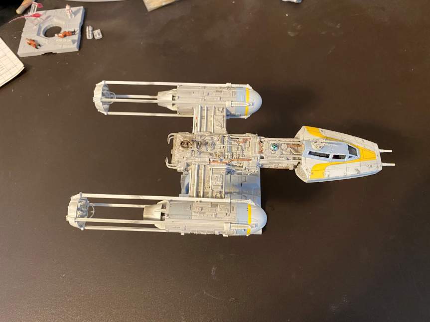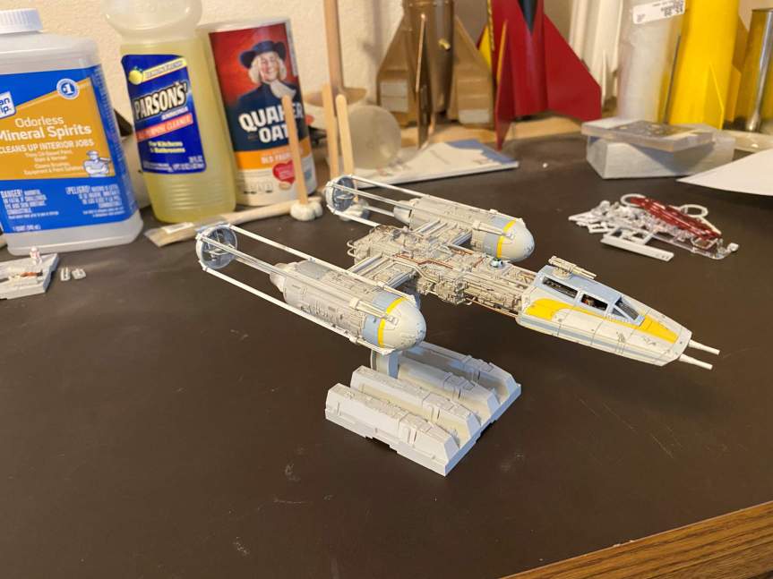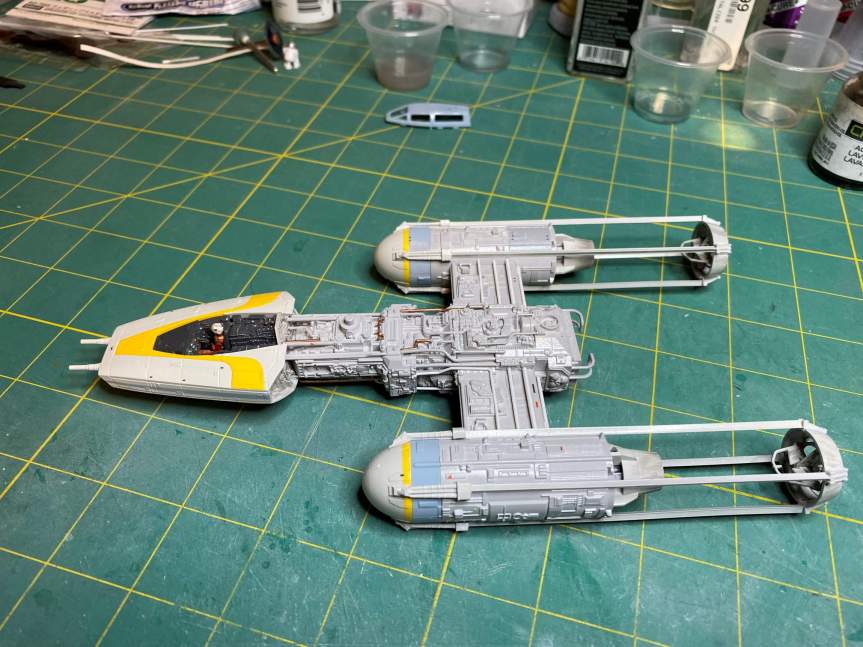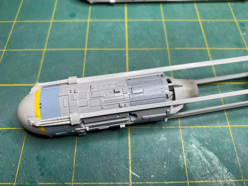 The next thing to do on the Y-Wing was to build the engine nacelles. Once that was done I started applying decals. The trickiest decal was the one that went on the right nacelle. It had a couple of raised details as well as being over a ribbed area.
