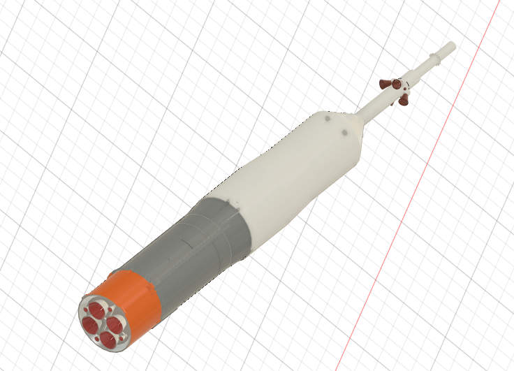 I thought since I have a 3D printer I might as well put it to use on this project. I went to Google and started searching for some 3D models of the Soyuz rocket. I finally found one on Thingiverse. Here is a link if you are interested: Soyuz FG rocket. It had some files in Fusion 360 format which allowed me to load it directly and see what it looked like. It looked good. From what I could tell the details matched my sources pretty well. A few minor bits were missing but at this scale that would be OK.
