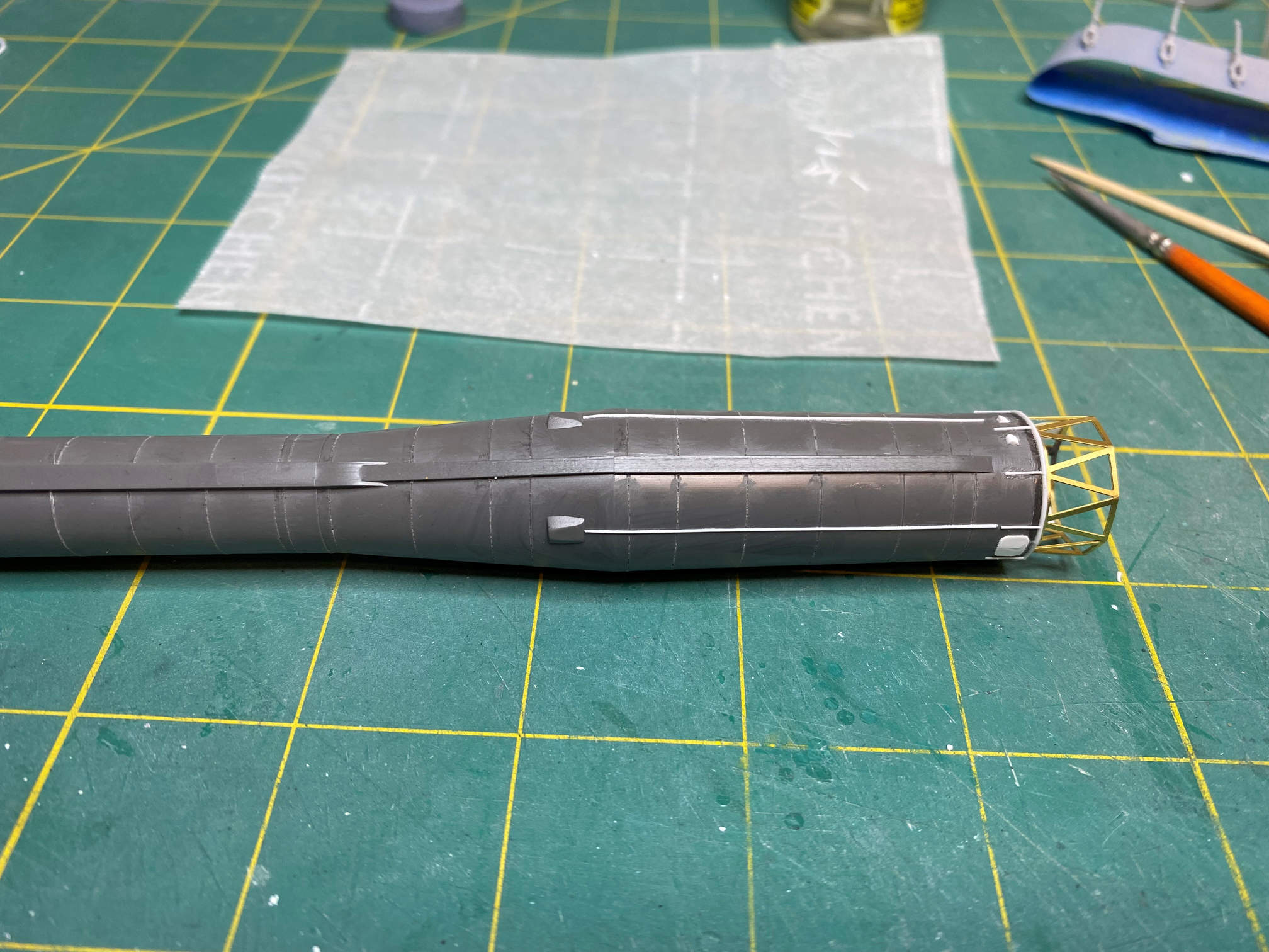 I then added some 0.10″ rod that runs from the booster attach points to the instrument section.