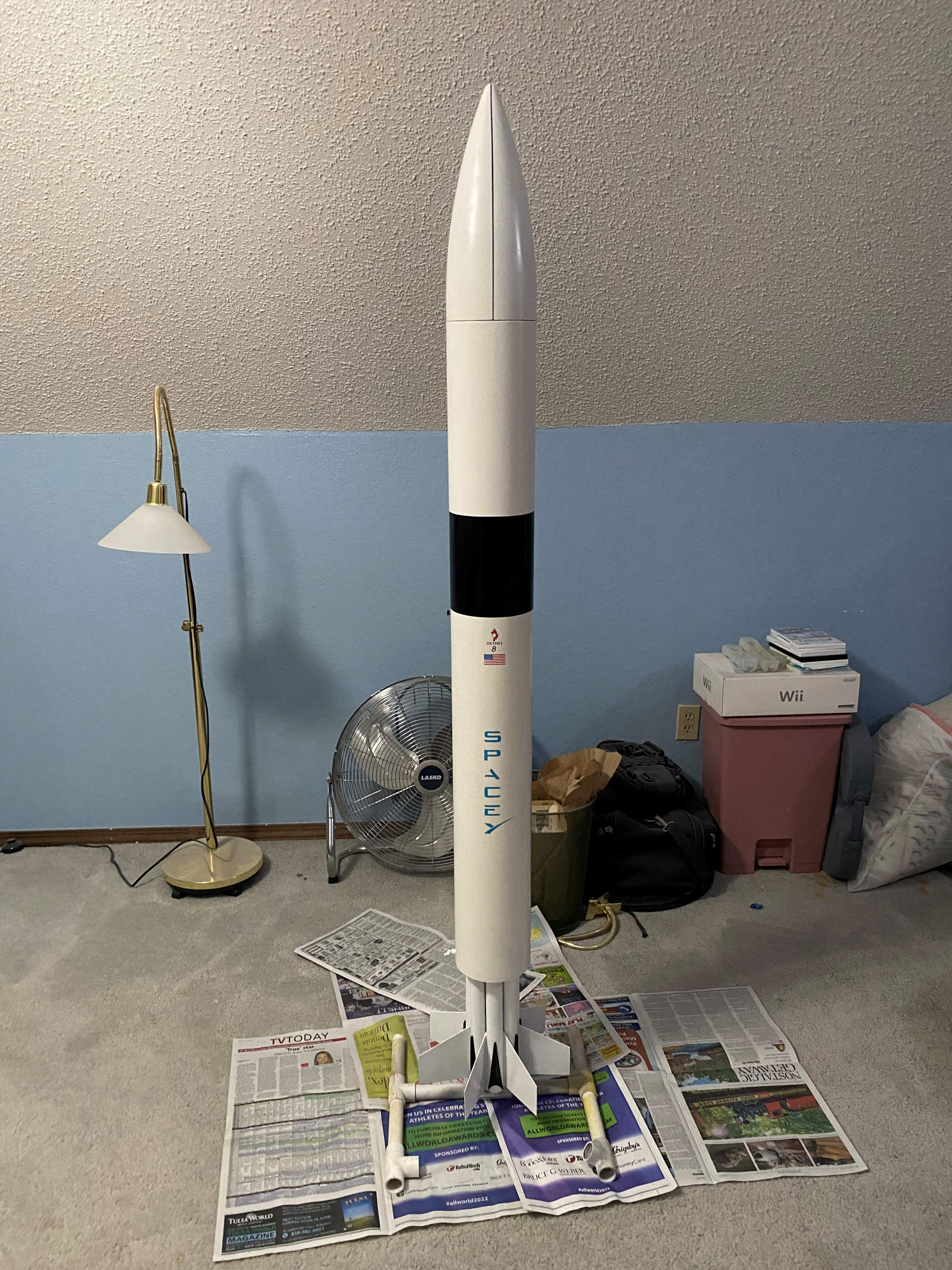 Then it got set aside until June when I finally got around to painting the whole rocket white.