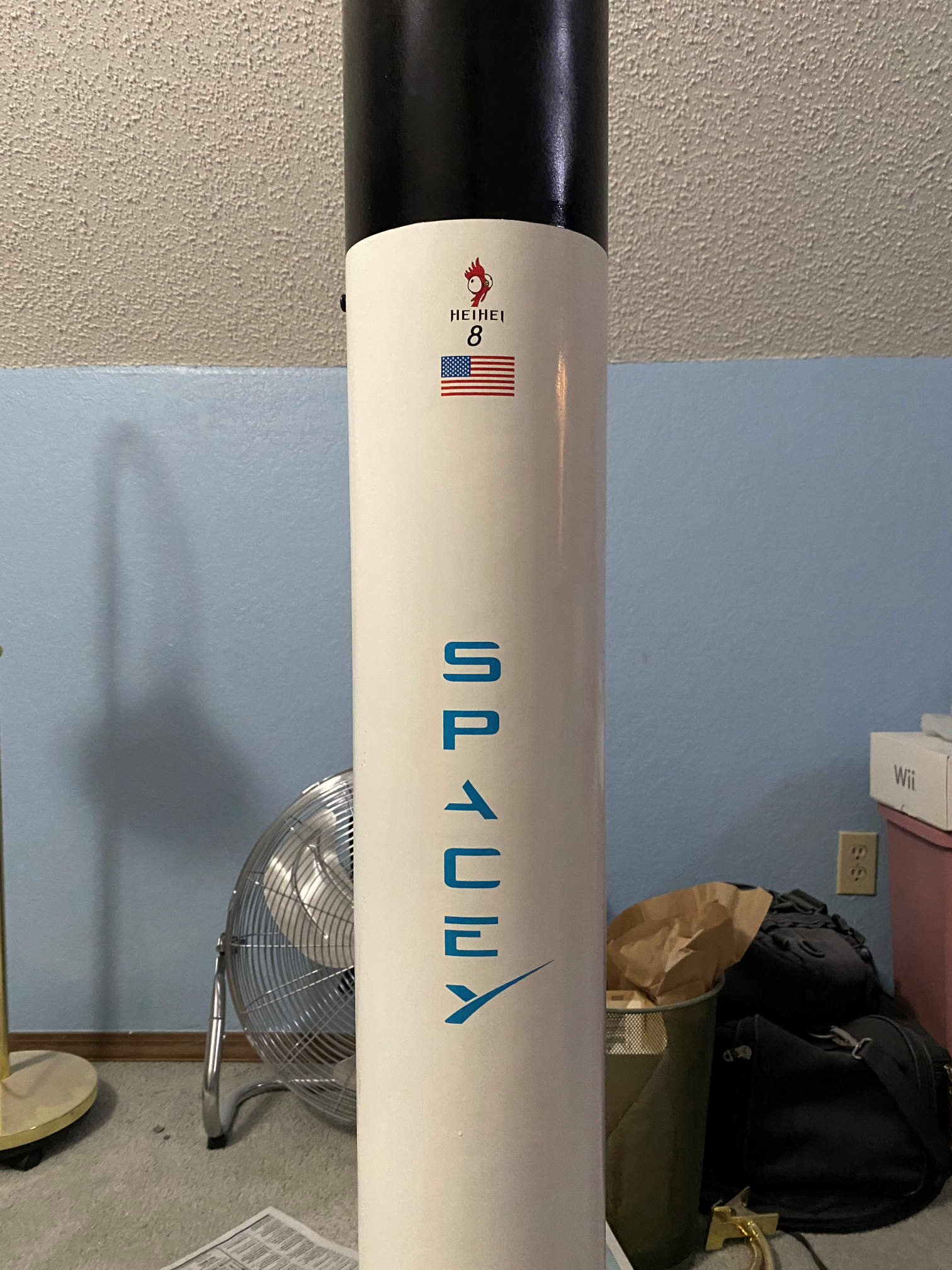 Instead of Falcon 9, this rocket is Heihei 8. Heihei is the stupid but very lucky chicken from the Disney movie Moana. I also used the SpaceX logo and removed a leg of the “X” to make it SpaceY. You can think of it as space-why or spacey which ever you prefer.