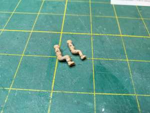 I used some Mr. Surfacer to fill some of the sliced areas. I also used some on both astronauts where they had a molded depression in their chests. Their arms will be added later after I get the cockpit built so I can be sure their arms do not interfere with anything. The spacewalker’s right arm will also get the maneuvering gun removed.