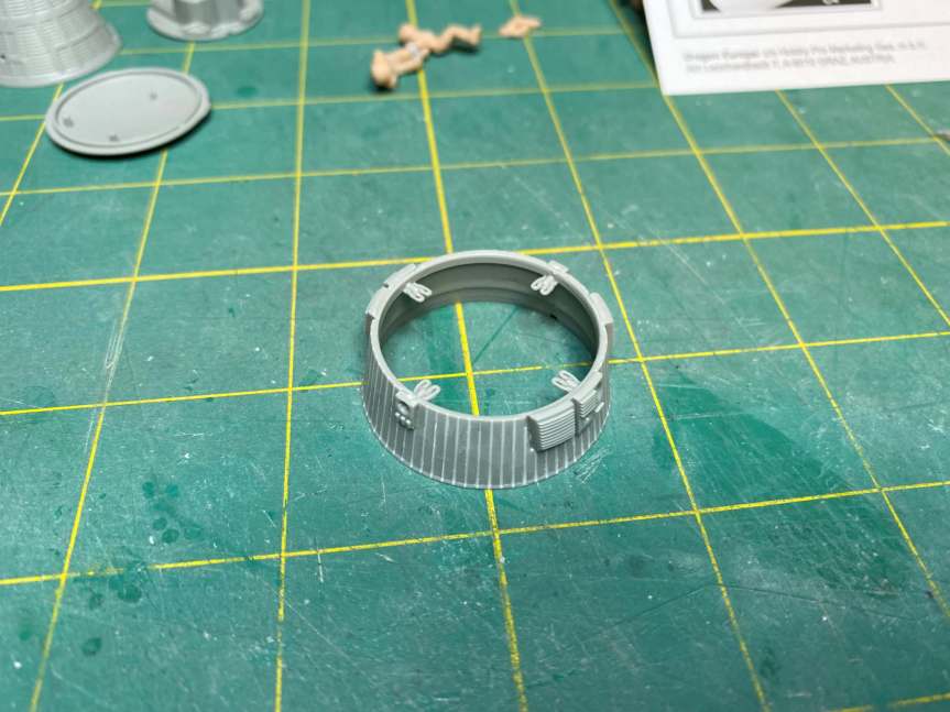 I decided that rather than use the included stand I’ll drill a hole through the lower single thruster and use that with a metal rod to attach the model to the base. I’ll do that a bit later since I need to get some 1/16 inch steel rod first.