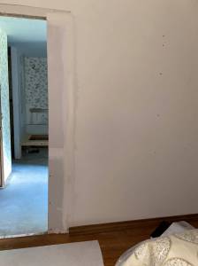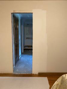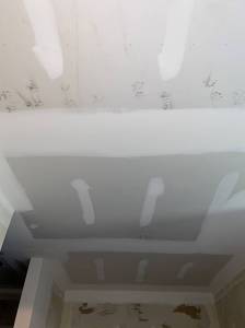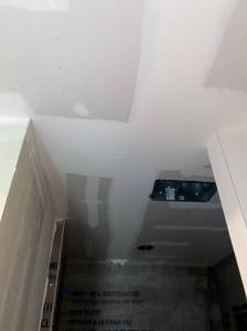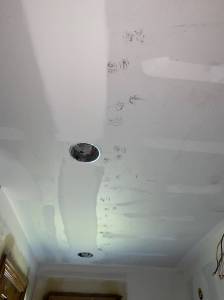 The week finished with more mud work done to all the areas that had new sheetrock added. Notice the nice raccoon footprints on the sheetrock. It must have been stored outside for a while.
