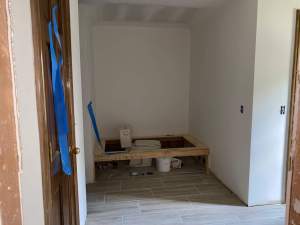 Week 3 started with them getting the shower floor prepared for the new tile.