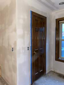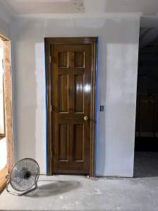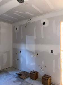 While that was getting done, the old wallpaper was removed. That required more mudding of the sheetrock to cover any wall damage from removing the wallpaper.