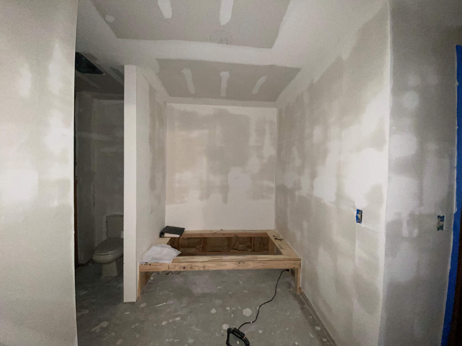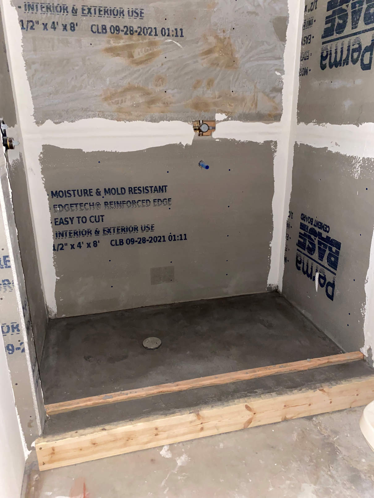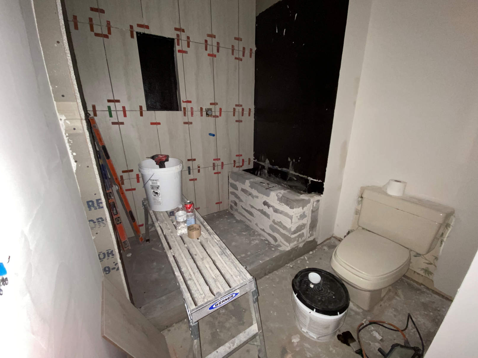 Week 3 started with them getting the shower floor prepared for the new tile.