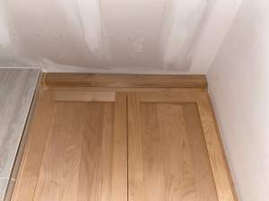 They were unable to cut the back splash that day since they didn’t have the right tool. The vanity back splash is about half the thickness of the vanity top (1.5cm instead of 3cm). With the length of it, that made it too flexible so they grooved the backside and glued in some steel rods to strengthen it. That is the reason they would have to come out the next day.