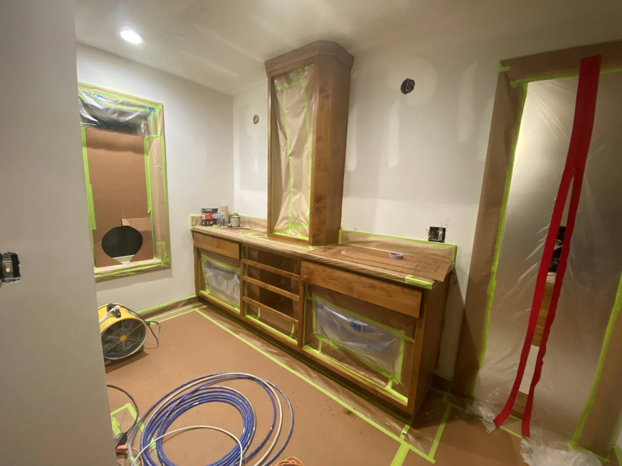 Week 10 was rather slow. They did finish the lacquer work on all the cabinet frames. The cabinet doors and drawers were taken back to the shop to get finished.