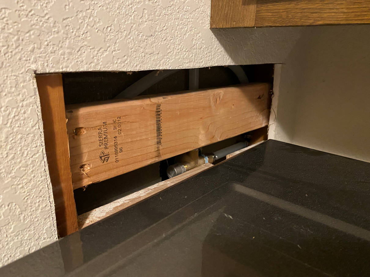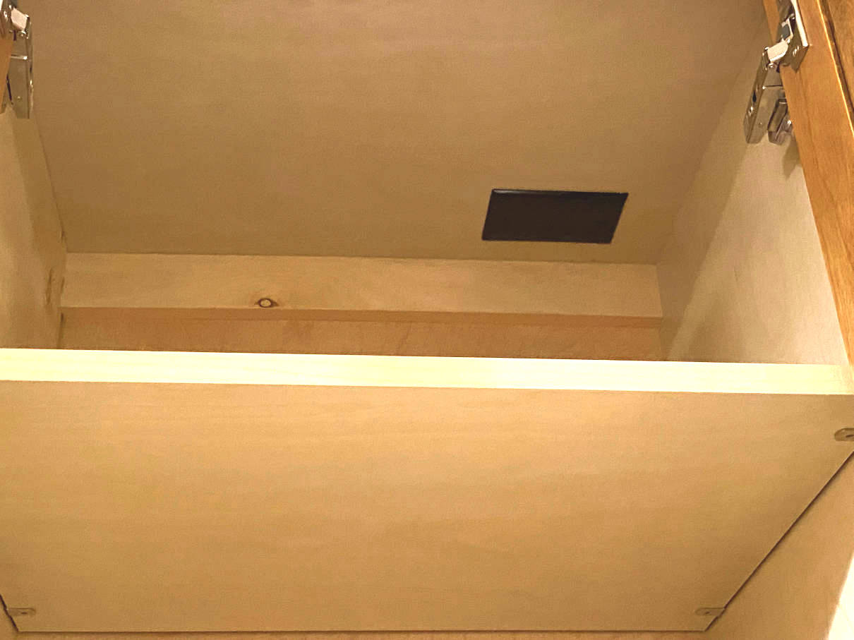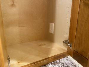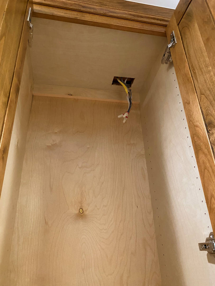 The electrician came back out to put a cover over the hole where the wires were hanging down. I’m not sure why the wires were there to begin with.