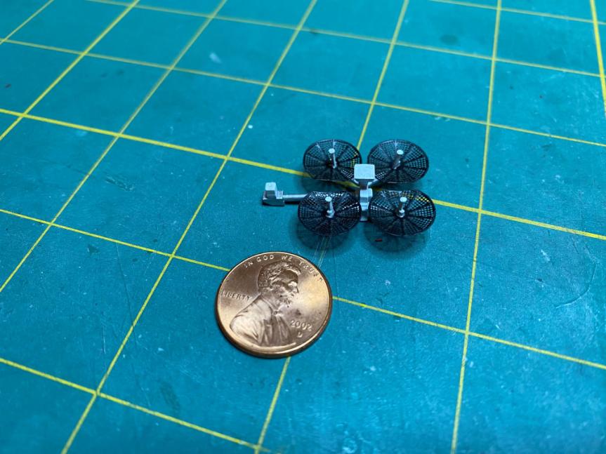 While the paint was curing I started on the Steerable High Gain Antenna. I painted the PE dishes NATO Black. The mast was painted Vallejo Silver and the rest was left primer white.