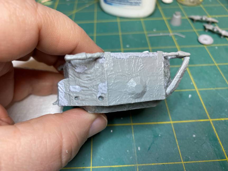 Mr. Surfacer 500 applied roughly does a good job disguising the parts. Here is a view from the top.
