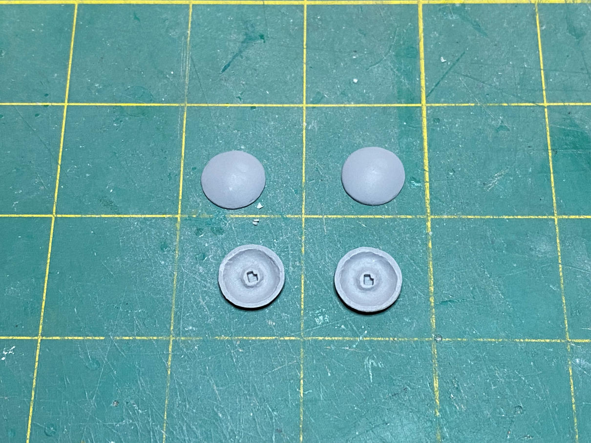 The landing pads were a bit of a booger to prep. I needed to remove all the molded in foil since Apollo 10 didn’t have any foil applied to the landing pads (except for a tiny bit on the quarter that faced the rocket nozzle). The bottoms were not too hard to do, but the top surface was tricky. I first tried sanding, but given their size that wasn’t working out too well. I ended up applying some Mr. Putty 500 to the surface to somewhat level out the crinkles. I then took a Dremel tool with a carving bit and went around the inside. This worked fairly well. You can see a bit of unevenness around the edges that I’ll have to clean up but I think this will do the trick.