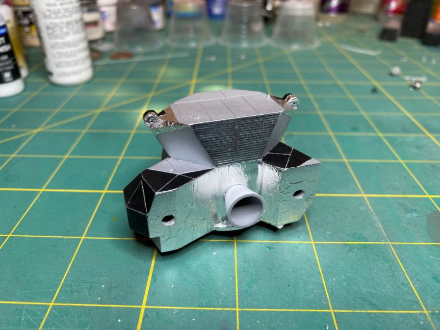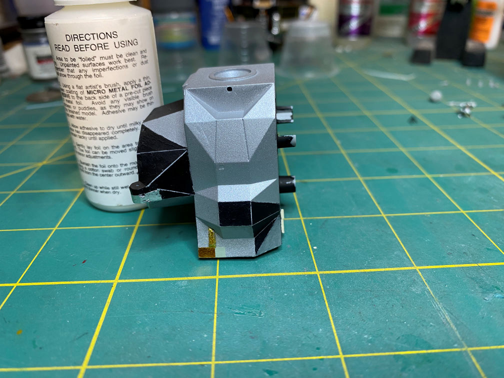 The left side had a small area that needed some details. I used gold and dark orange foil sections and one small rectangular area was painted Tamiya Japanese Navy Gray, which has a slight greenish gray tint.