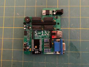 Here is the S-132 kit from The High Nibble. It adds many features that were provided on the real IMSAI 8080 by add-in S-100 cards. It provides output to a VGA monitor and supports either a PS/2 or USB-HID keyboard for input. You have to choose one or the other the board does not support both. I ordered my S-132 with the USB-HID port. The device simulation is done via an onboard ESP-32. This is in addition to the ESP-32 that runs the IMSAI 8080 emulator. It connects to the IMSAI 8080 clone via the patch header that is provided. Here is a picture of the S-132 board.