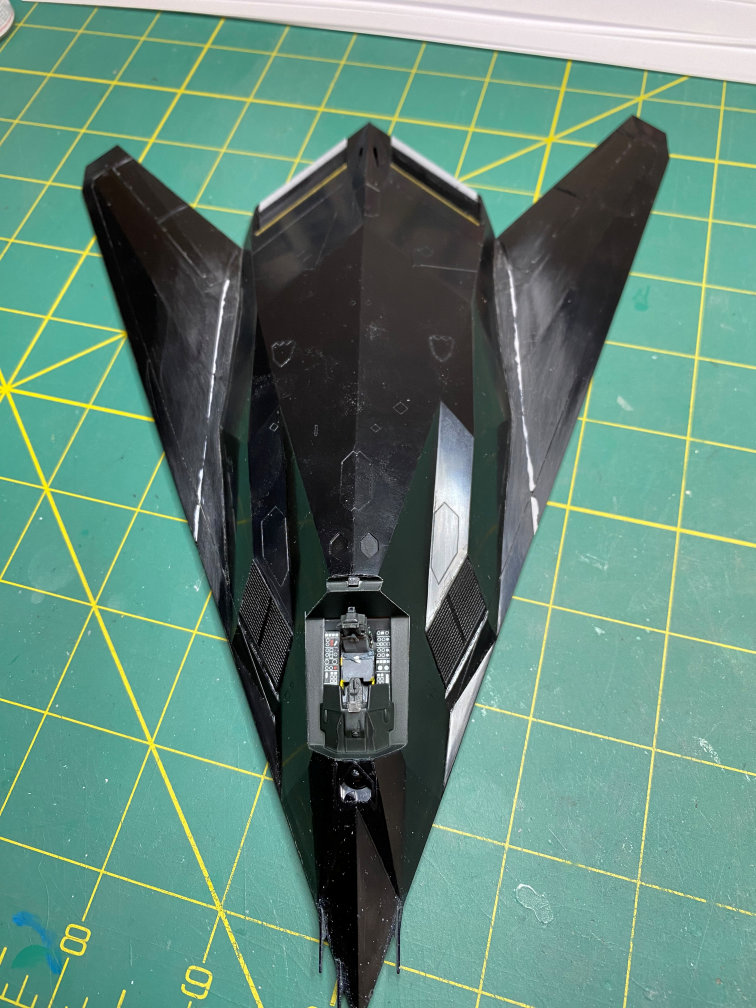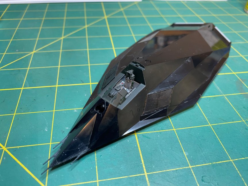 Here is a shot of the upper fuselage and the wing joints. If you look closely you can see the HUD has been added to the cockpit.