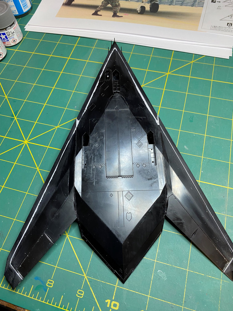 After the primer cured I sprayed the area with Tamiya NATO Black and removed the masking.