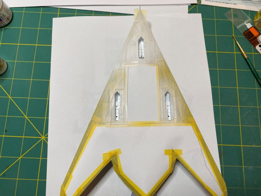 Before painting the main assembly NATO Black, I needed to mask off the landing gear bays so they would stay white. I started by applying some masking tape to the sides of the bays.