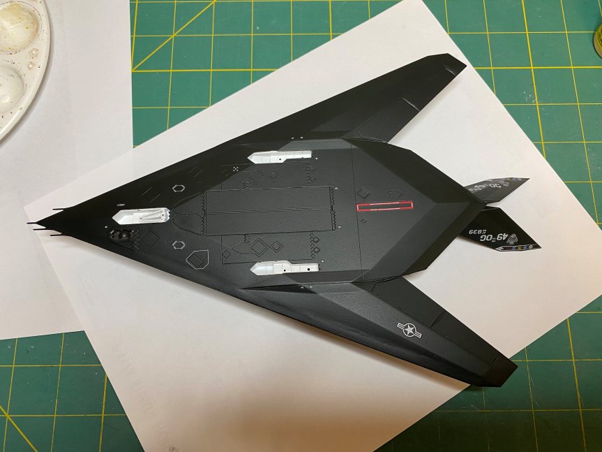 That’s it for now. I’ve started work on the base. I’ll also drill a hole in the bottom of the F-117 to accept a short piece of metal rod to attach the model to the base. The next post should complete the model. It shouldn’t take a month to get that post out.