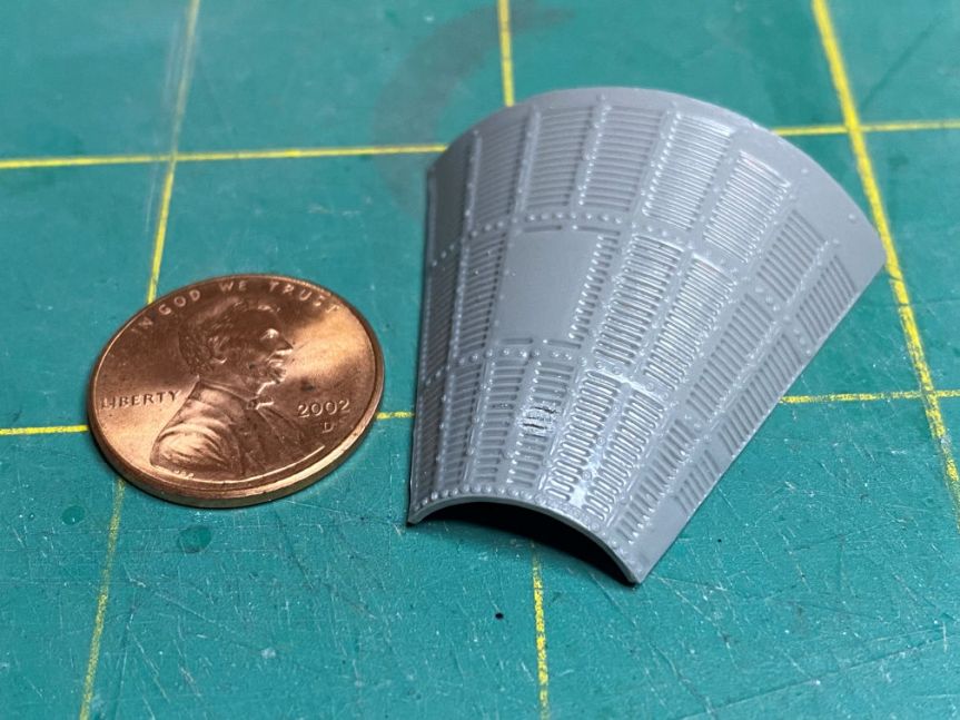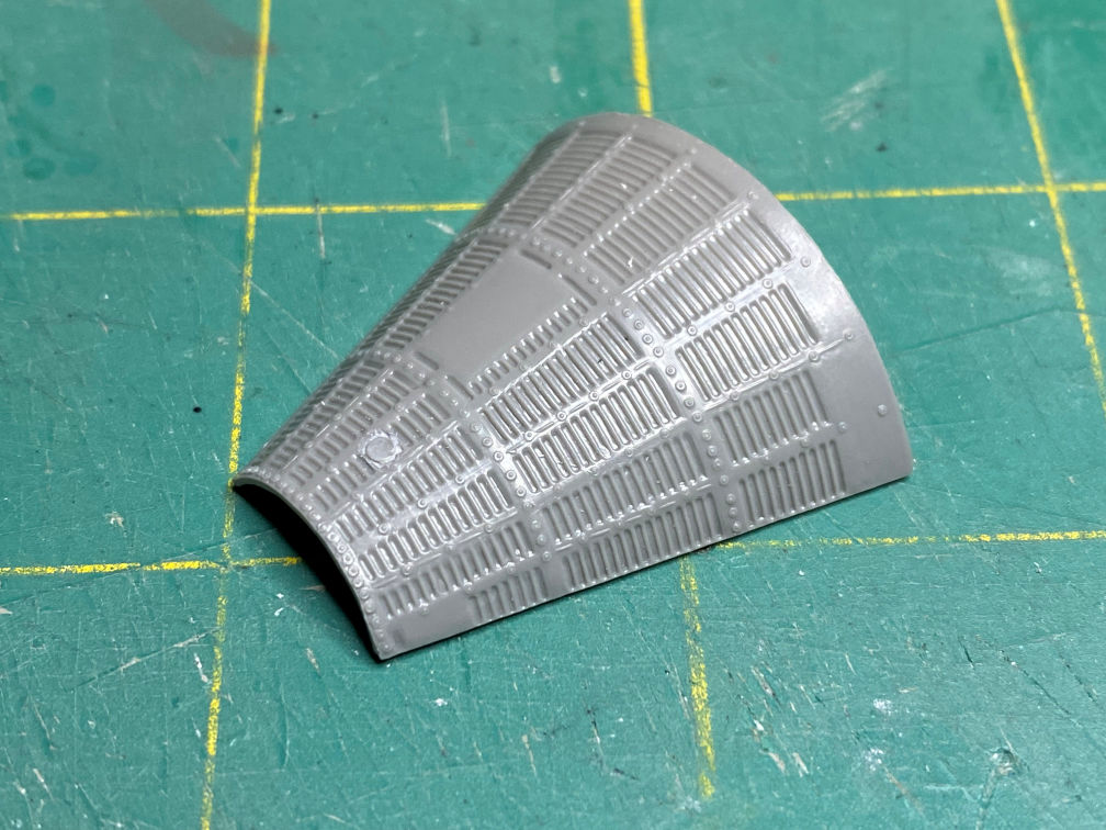 Next I took some etching tools and attempted to carve in some corrugations. We’ll see how they look after the part gets primed.
