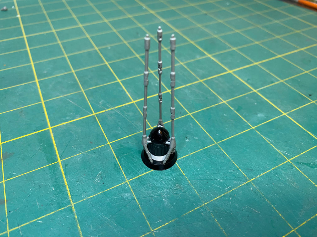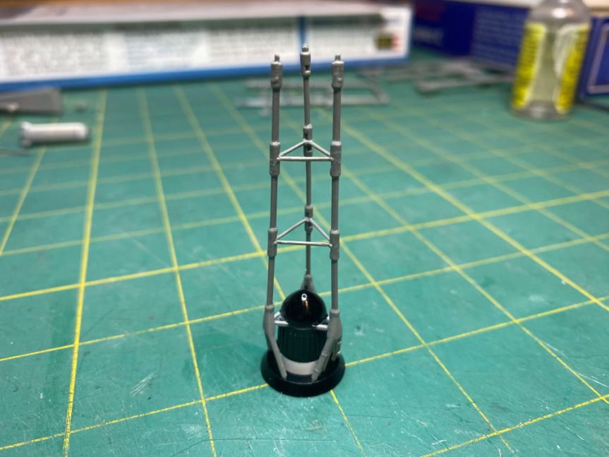 I then masked the lower part of the antenna shroud in preparation to paint the rest of the shroud with Tamiya TS-63 NATO Black.