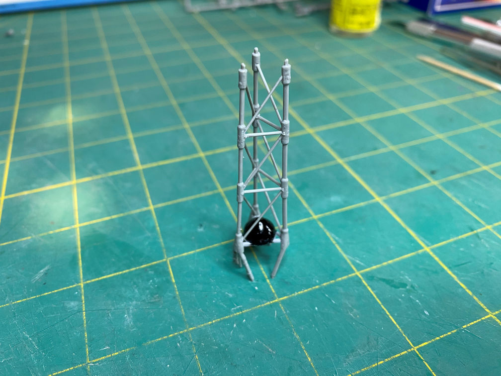 Next came the diagonal braces. They are actually thinner than the cross braces. That made cleaning up the mold lines even more problematic.