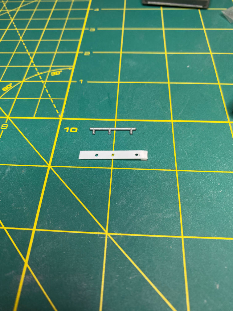 It was finally time to add the antennas to the instrument section. I created a jig to help me align the holes (more like shallow depressions) that I was going to drill in order to attach the antennas.