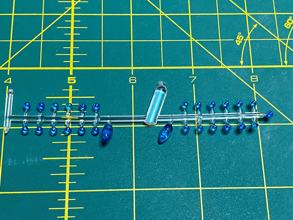 I got time to get back on this build. I continued painting with the clear parts. I wanted to have windows that would have some color to them. I used Tamiya X-23 Clear Blue and painted the outside of each window and the cockpit windows for the two space cars. The color looks great. It is glossy and should really make the windows pop. I painted them on the sprue because they were far too small to hold and paint.